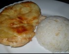 A csirkemellet enyhén megsózzuk, majd forró vajon mindkét oldalát megsütjük (csak annyira, hogy kapjon egy kis színt). Ezután a tepsibe tesszük őket, majd mindegyikre 1-1 ananászkarikát teszünk, és lefedjük sajttal. Takarékon vagy 2-es fokozaton sütjük, hogy a sajt szépen megpiruljon. Rizzsel tálaljuk.