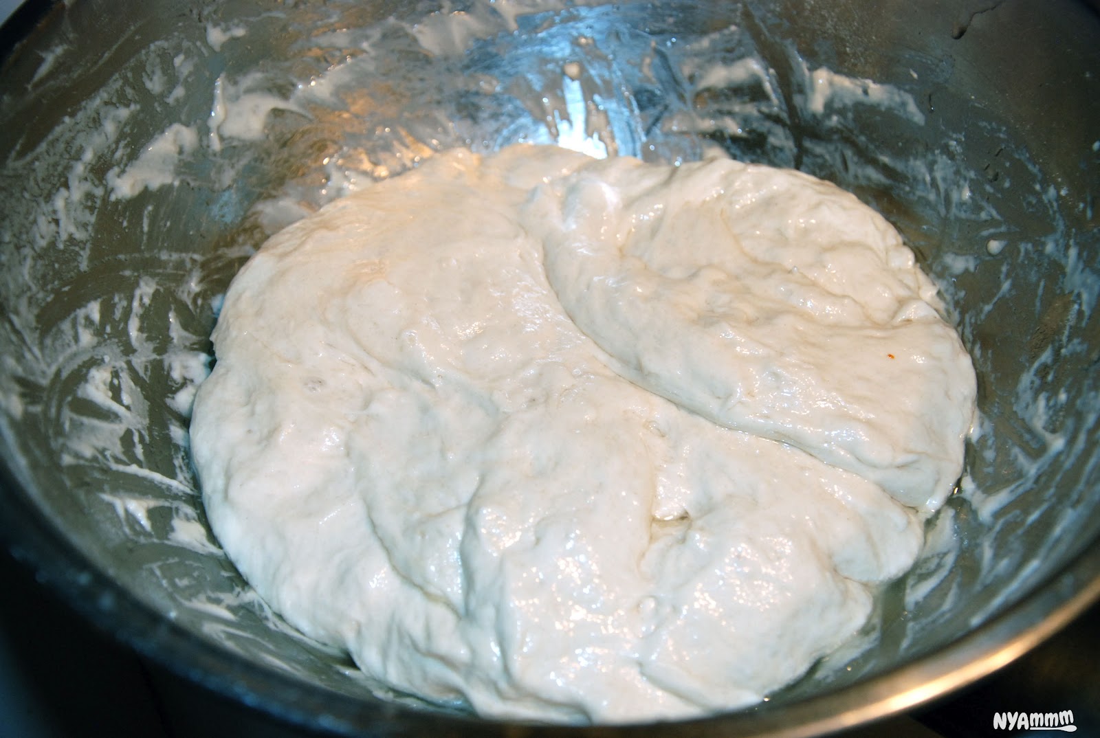4. Hozzáadjuk a lisztet és laza tésztát keverünk ki belőle, amit 20 percre letakarunk és kelni hagyunk.