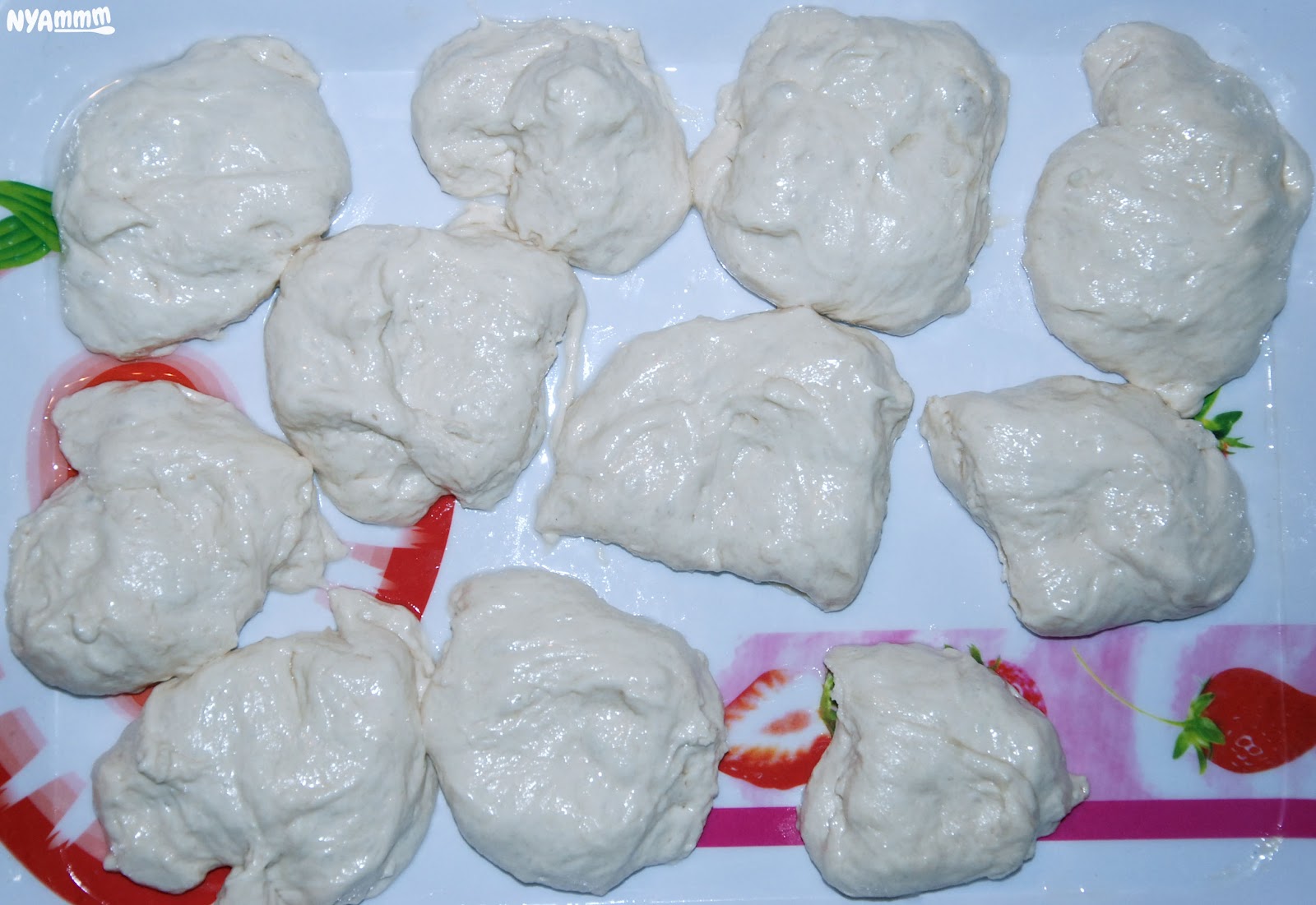 7. Utána tetszőleges méretű gömbőcöket tépünk le a tésztából és egy olajozott tálcára tesszük őket és 5-10 percig állni hagyjuk.