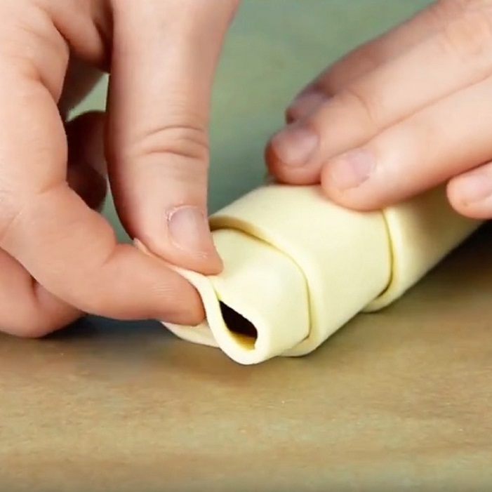 3. Nyomkodjuk meg a tészta szélét, hogy a csokoládé ne folyjon ki.