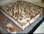 Az eredeti recept szerint kakaóporral kell bevonni, de újításként mi csokimázt tettünk rá úgy, hogy a barna csokira még fehéret is olvaszottunk, majd kicsit össze húzogattuk egy villa segítségével... Így sokkal mutatósabb
