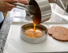 Rátesszük ezt a piskótát a sárgabarack krémre. A karamell masszát ráöntjük, majd hűtőbe tesszük. (Pluszos hűtőben egy éjszakát kell, hogy álljon a vágáshoz, hamarabbi felhasználáshoz és vágáshoz javasolt sokkolni.)