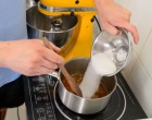 A cukrot a vízzel karamellizáljuk, majd hozzáadjuk a mandulát. Jól átforgatjuk a mandulát és sózzuk.