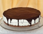 Amikor a torta már teljesen megdermedt, vegyük ki a hűtőből, majd vonjuk be a tetejét olvasztott csokoládéval.