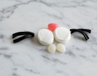 A nyuszi pofiját pillecukrok, drazsék és gumicukor segítségével formázzuk meg